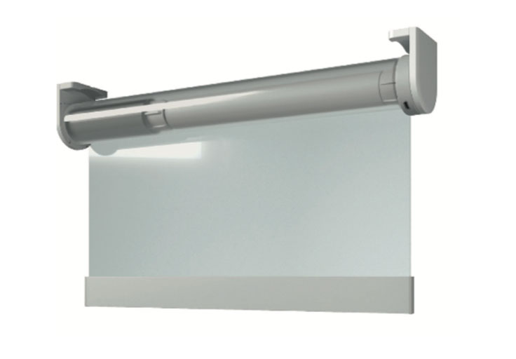 Con posibilidad de accionamiento mediante cadena o con motor tubular a batería, se fabrica a la medida de las necesidades de cada negocio, pudiendo realizar la función de la tradicional mampara de metacrilato pudiendo ser retirado cuando sea necesario.