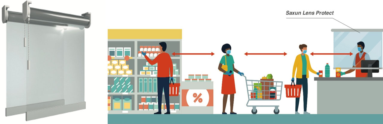 Utilizando una lona confeccionada con el PVC transparente más avanzado instalado en un Enrollable de Saxun, asegurará la tranquilidad de los trabajadores y ayudará a los clientes a sentirse cómodos.